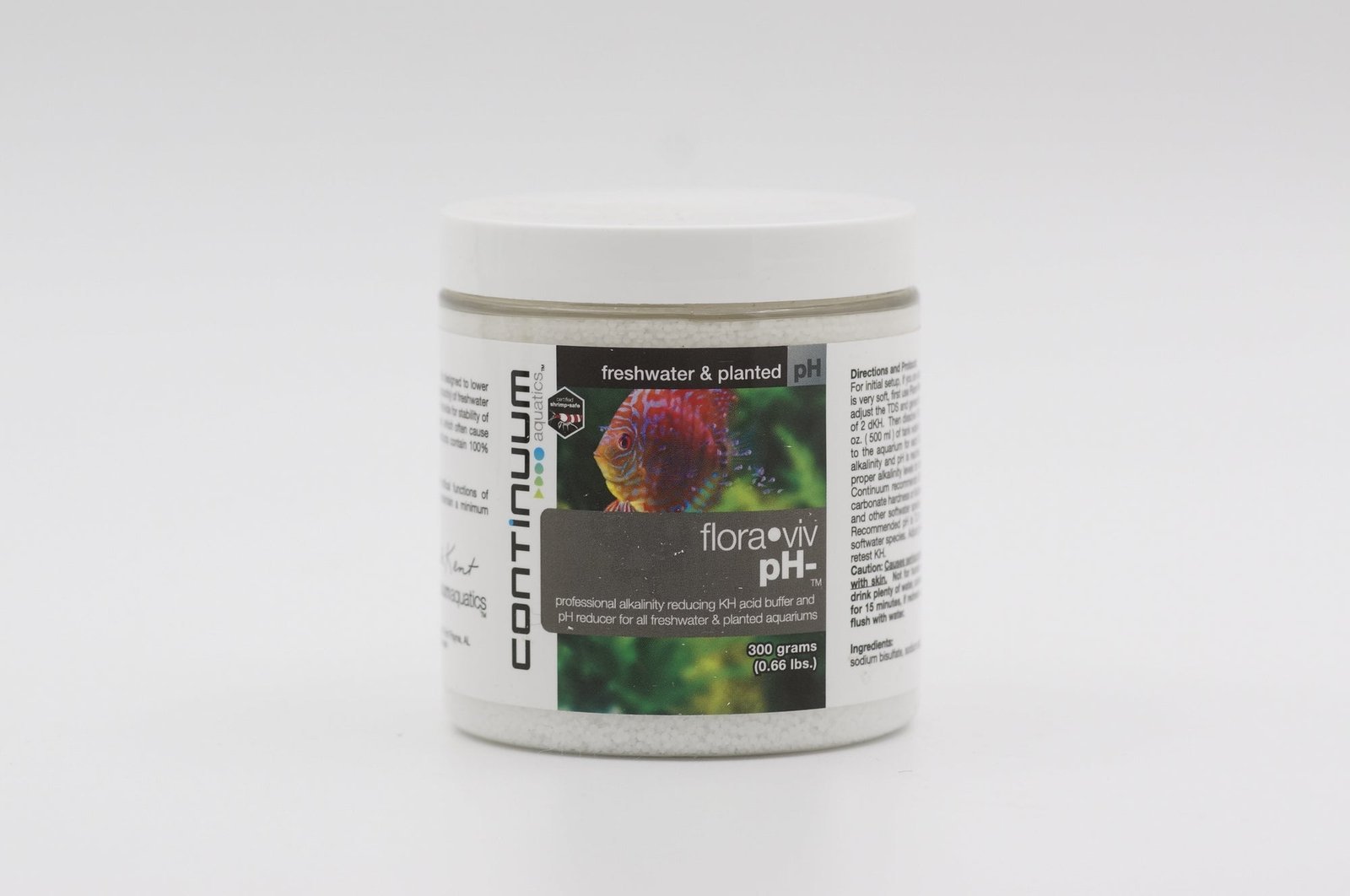 Flora Viv pH- is a shrimp safe, phosphate free acid buffer. It is designed to lower the pH and the alkalinity (carbonate hardness (KH) or buffering capacity)of freshwater and planted aquariums. When used with Flora Viv KH+ , it will provide for stability of pH over a wide range of conditions. It contains no phosphates ,which often cause cloudiness and unwanted algea growth (many competing products contain 100% phosphates).